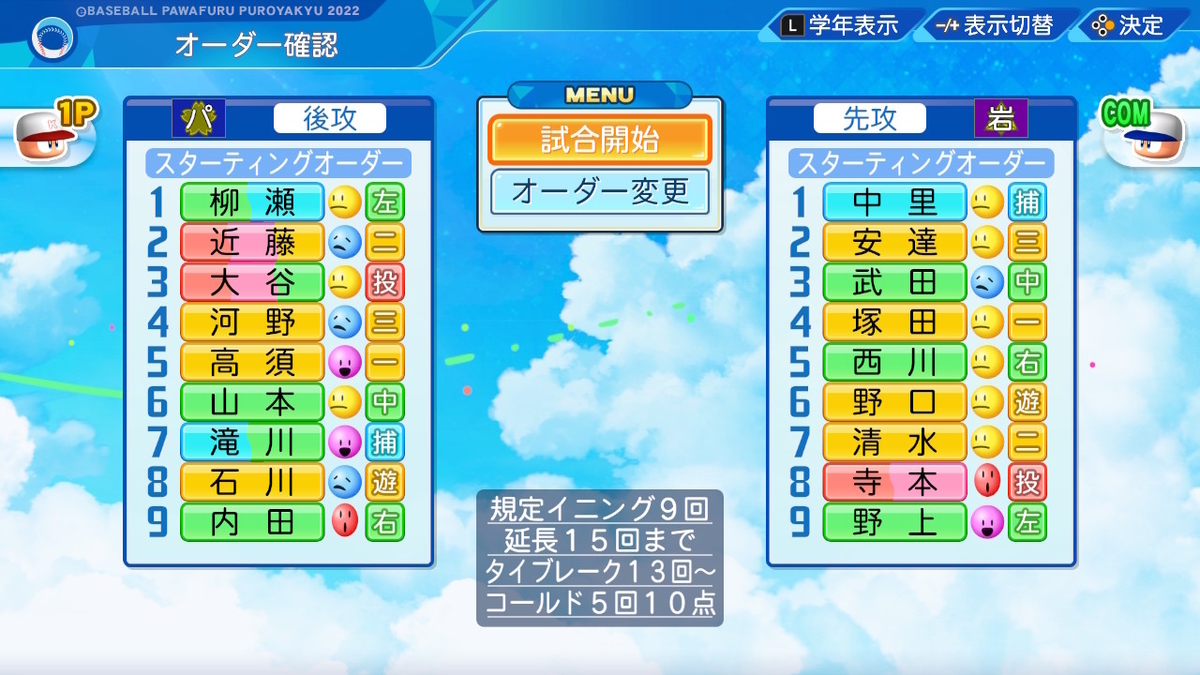 同点のまま9回突入。9回裏得点ならず延長戦へ。